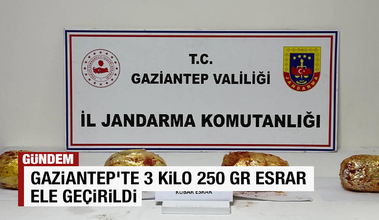 Gaziantep İl Jandarma Komutanlığı ile Cumhuriyet Başsavcılığı koordinesinde yapılan aramalar sonucunda uyuşturucu ve uyarıcı madde ile mücadeleye yönelik 3 kilo 250 gr esrarı ele geçirildi.