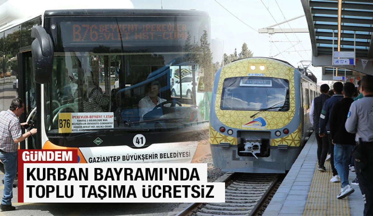 Büyükşehir Belediyesi Gazi Ulaş A.Ş’ye bağlı tramvay, Gaziray ve turuncu otobüsler, Kurban Bayramı’nda vatandaşların aile, akraba ve mezarlık ziyaretlerini gerçekleştirmeleri için 5 Haziran afere günü dahil olmak üzere 9 Haziran bayramın son gününe kadar ücretsiz olacak.