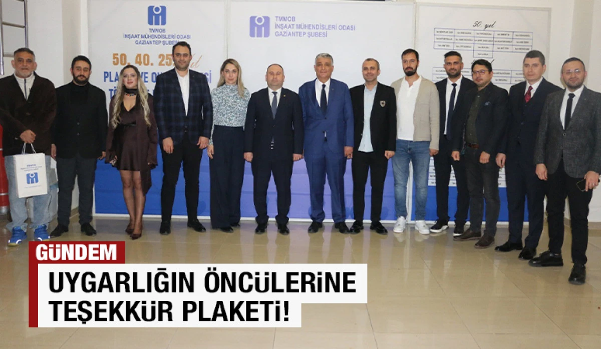 İnşaat Mühendisliği Haftası kutlamaları kapsamında düzenlenen plaket törenine inşaat mühendisleri büyük ilgi gösterdi. Törenin açılış konuşması İMO Gaziantep Şubesi 2. Başkanı Mehmet Bulut tarafından yapıldı. İnşaat Mühendisleri Odası Gaziantep Şubesi Korkut Küçükcan Konferans Salonundaki törende, meslekte 50, 40 ve 25 yılını dolduran inşaat mühendislerine Plaket ve Hizmet Belgesi verildi. Plaket ve hizmet belgeleri, İMO Gaziantep Şube Başkanı Burkay Güçyetmez, yönetim kurulu üyeleri ve geçmiş dönem şube başkanları tarafından verilirken, salonu dolduran inşaat mühendisleri plaket alan meslektaşlarını alkışlarla kutladı.